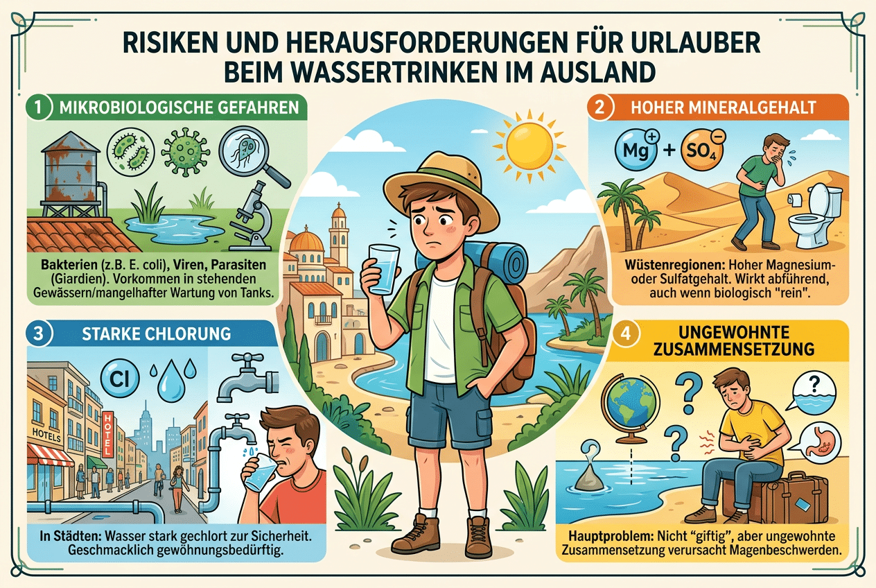 Das Hauptproblem für Reisende ist meist nicht „giftiges“ Wasser, sondern die ungewohnte Zusammensetzung.