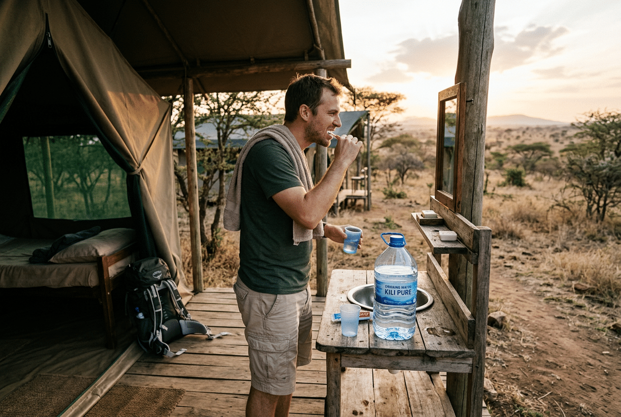 Körperpflege: Nutzen Sie in ländlichen Lodges oder beim Camping Trinkwasser zum Zähneputzen.