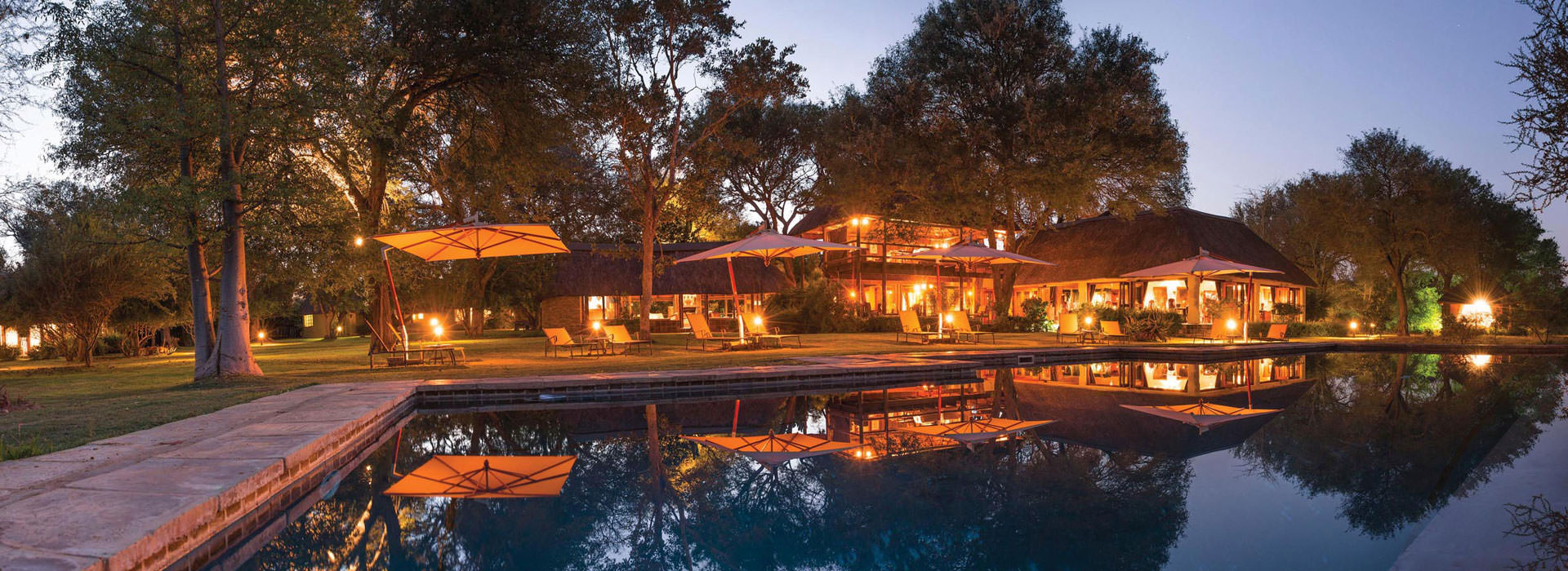 Umgeben von einer weitläufigen Grünanlage und in unmittelbarer Nähe zu einem Wasserloch können Sie hier die Ruhe und Abgeschiedenheit inmitten des afrikanischen Busches in vollen Zügen genießen. Nicht selten sieht man hier Elefanten und Wasserbüffel vorbeiziehen, die man auch von einem abseits gelegenen Hochsitz beobachten kann. Mit etwas Glück lässt sich auch der scheue Leopard blicken. Zu den weiteren öffentlichen Einrichtungen der Lodge gehören der gemütliche Loungebereich mit Fernseher, eine Bibliothek sowie ein Swimmingpool, der in den heißen Stunden des Tages für die nötige Abkühlung sorgt.